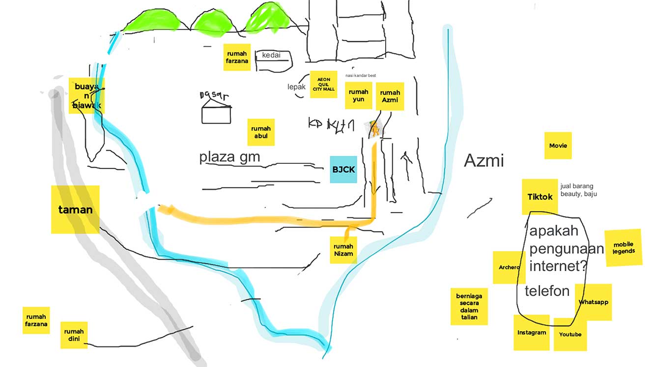 Movement restrictions had entered a stricter phase during our Community Mapping exercise. Severed from their neighbourhood, “sunyi/kebebasan” (or lonesomeness/freedom) was the first major topic we encountered when working with these students.